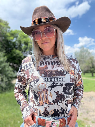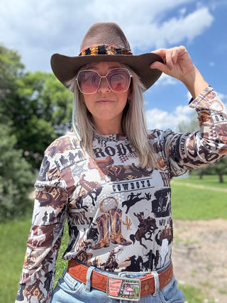 Western Cowboy Embroidery Pink Sleeveless Sweater